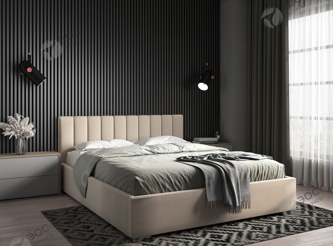 Кровать «Agata» выполнена в сдержанном лаконичном стиле и понравится ценителям простых и понятных форм в интерьере. Модель комплектуется удобным изголовьем с вертикальными полосами в виде декора. Кровать оснащена подъёмным механизмом (в качестве опции комплектуется газовым лифтом) и вместительным бельевым ящиком. Производится со встроенным основанием с ортопедическими ламелями. К ней отлично подойдет матрас ЭОС Тип 13