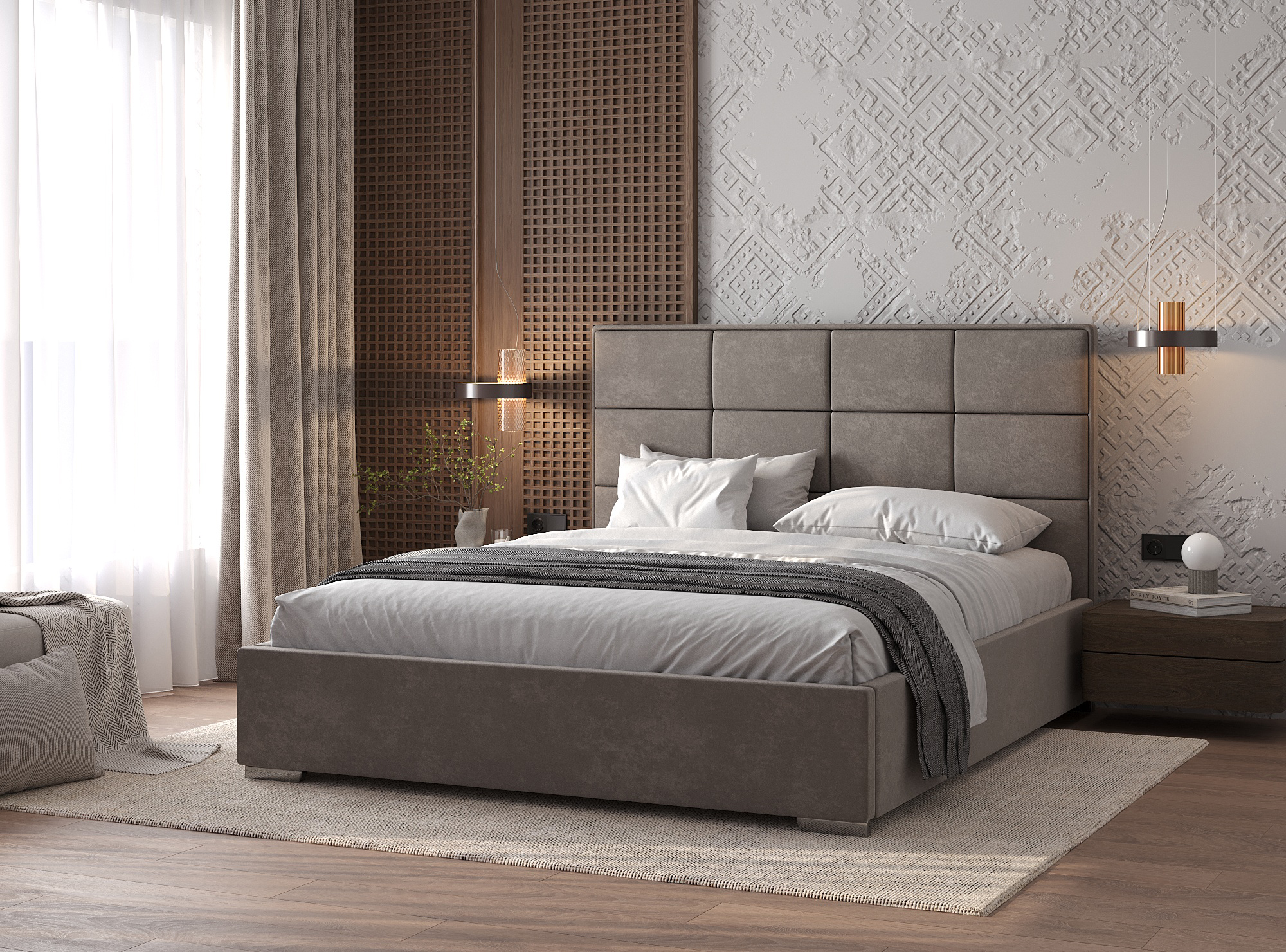 Кровать «Grand Plus» — это элегантное решение в стиле современной классики, которое сочетает в себе лаконичность форм и уют высокой мягкой спинки. Благодаря значительно увеличенному высоте изголовья, она создает ощущение уюта и защиты, превращая вашу спальню в настоящий оазис спокойствия.
