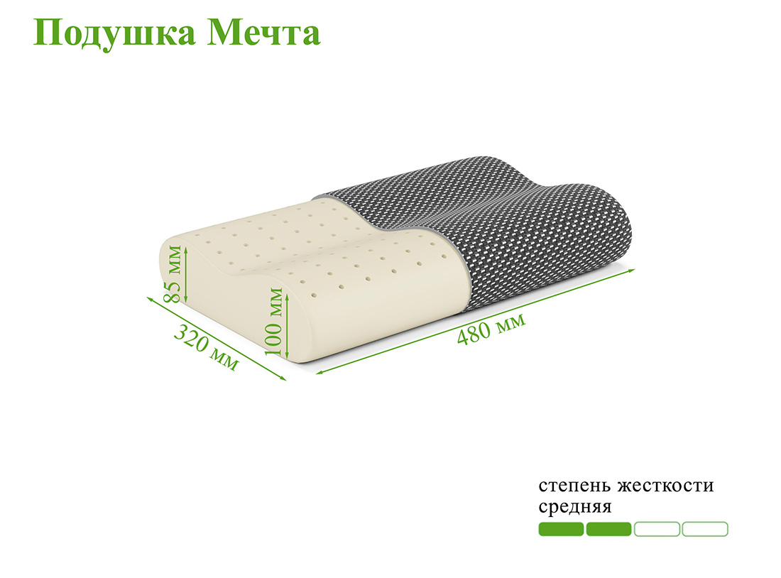Материал подушки приобретает ту форму, которую создает голова и предплечье. При отсутствии давления восстанавливается первоначальная форма. Размер и форма подушки подобраны для обеспечения мягкой опоры шейных позвонков. Подходит тем, кто спит на спине, и идеальна для людей, которые предпочитают спать на боку.