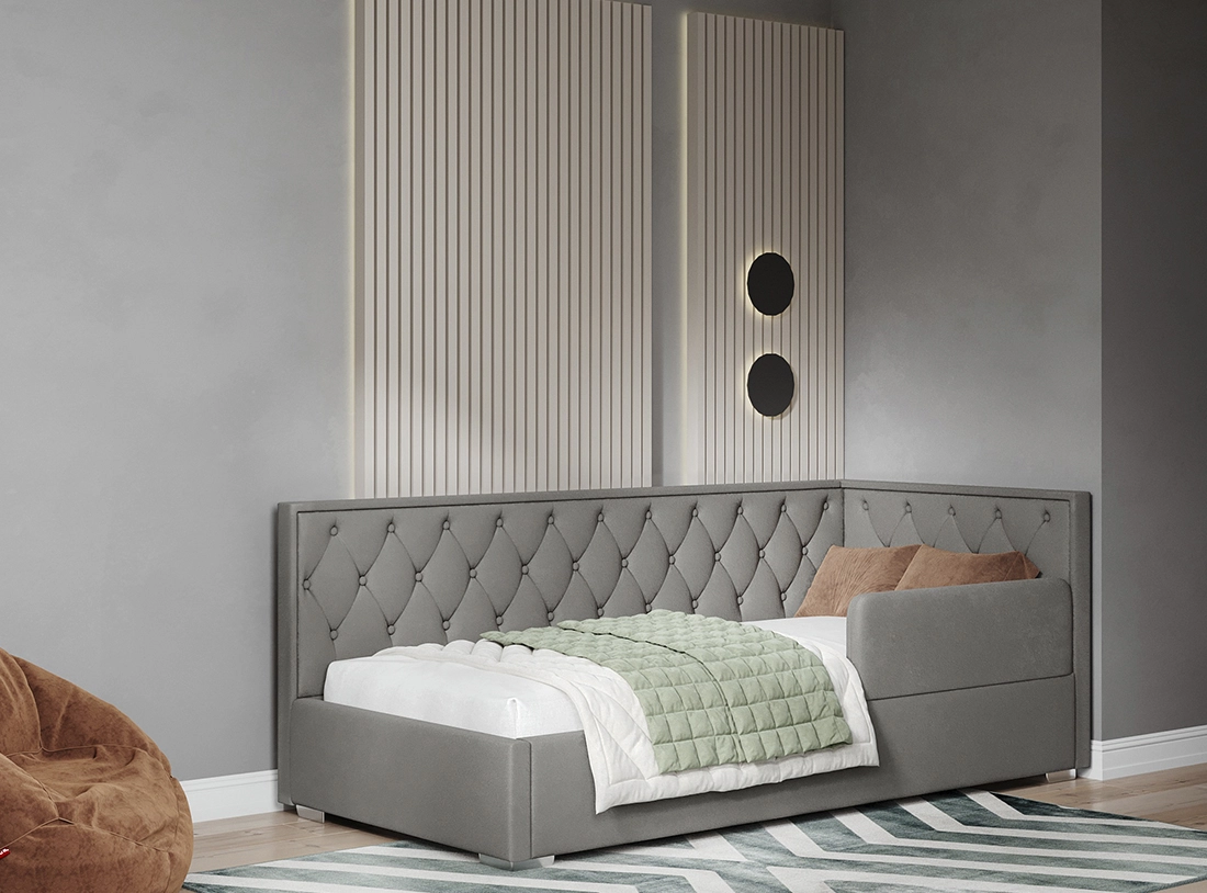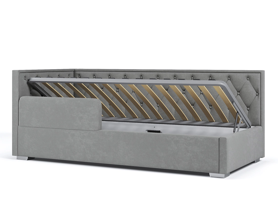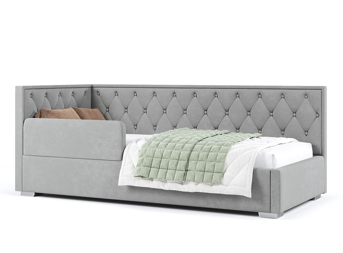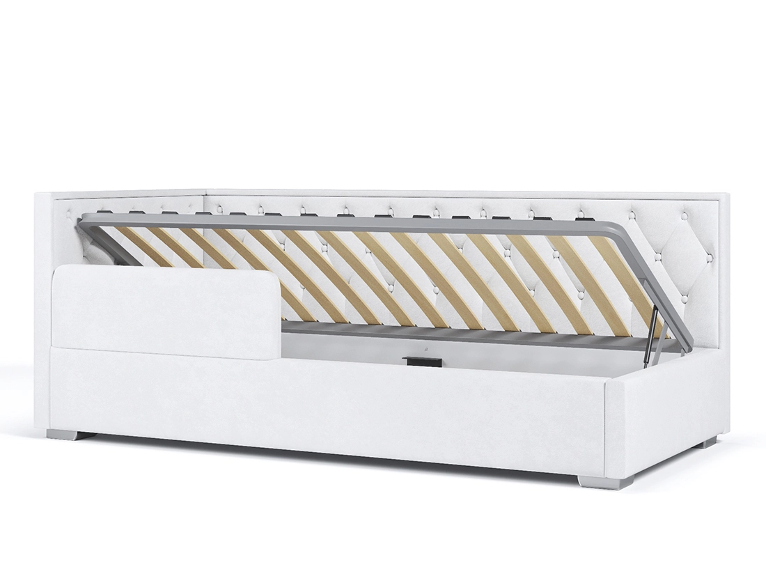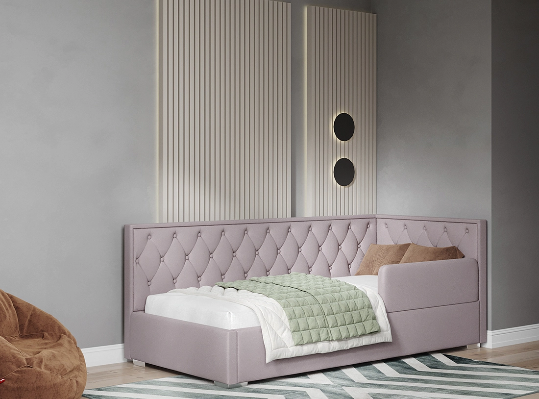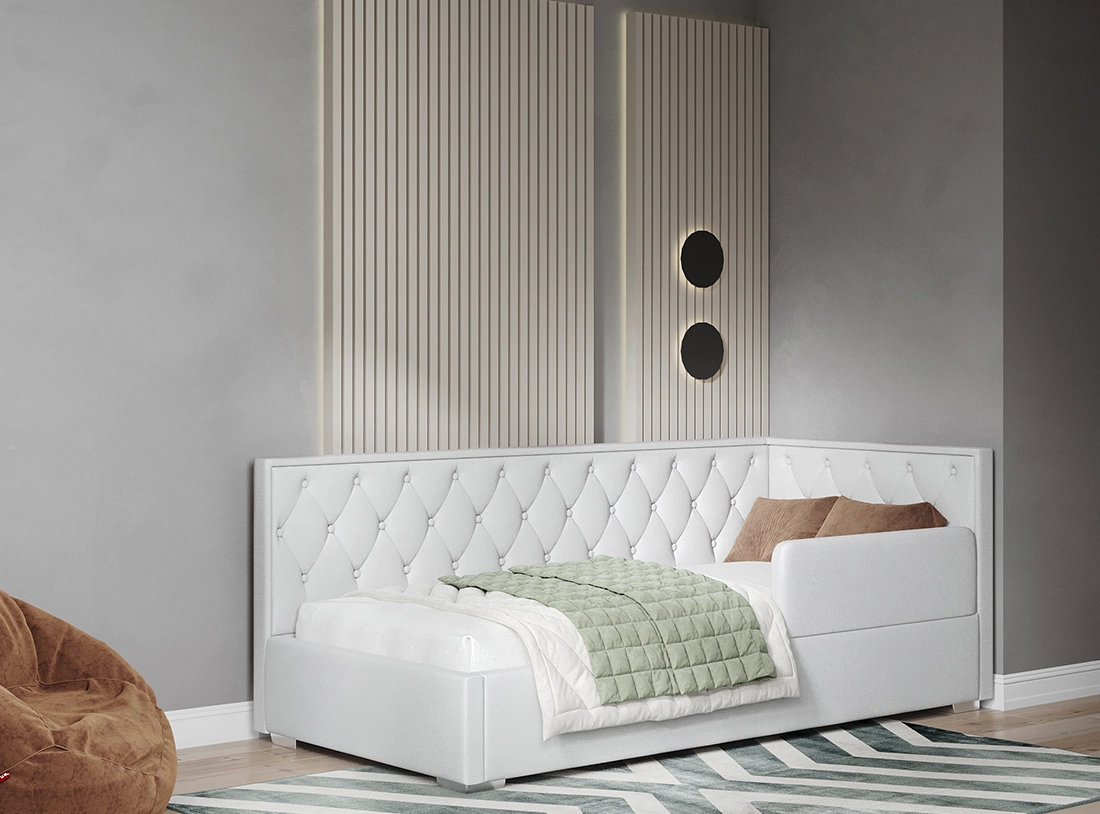 Кровать «Royal» от интернет-магазина ЭОС, производится со встроенным основанием с ортопедическими ламелями. Кровать прекрасно впишется в интерьер любой детской. Высокие спинки кровати защитят ребенка от падения и холодных стен. Глубокая утяжка на спинках кровати добавит нежности в атмосферу комнаты ребенка.