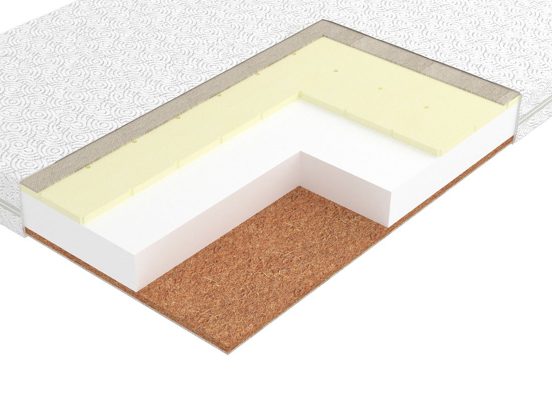 FoamLux (пенополиуретан) ,Кокосовая койра ,Натуральный латекс ,Хлопковое полотно |